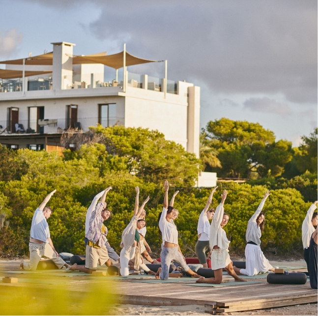 Set on the quiet side of Formentera, this retreat blends nature, contemporary design and understated luxury. The property offers expansive outdoor spaces, Mediterranean landscaping and open-air decks ideal for movement sessions or group activities.